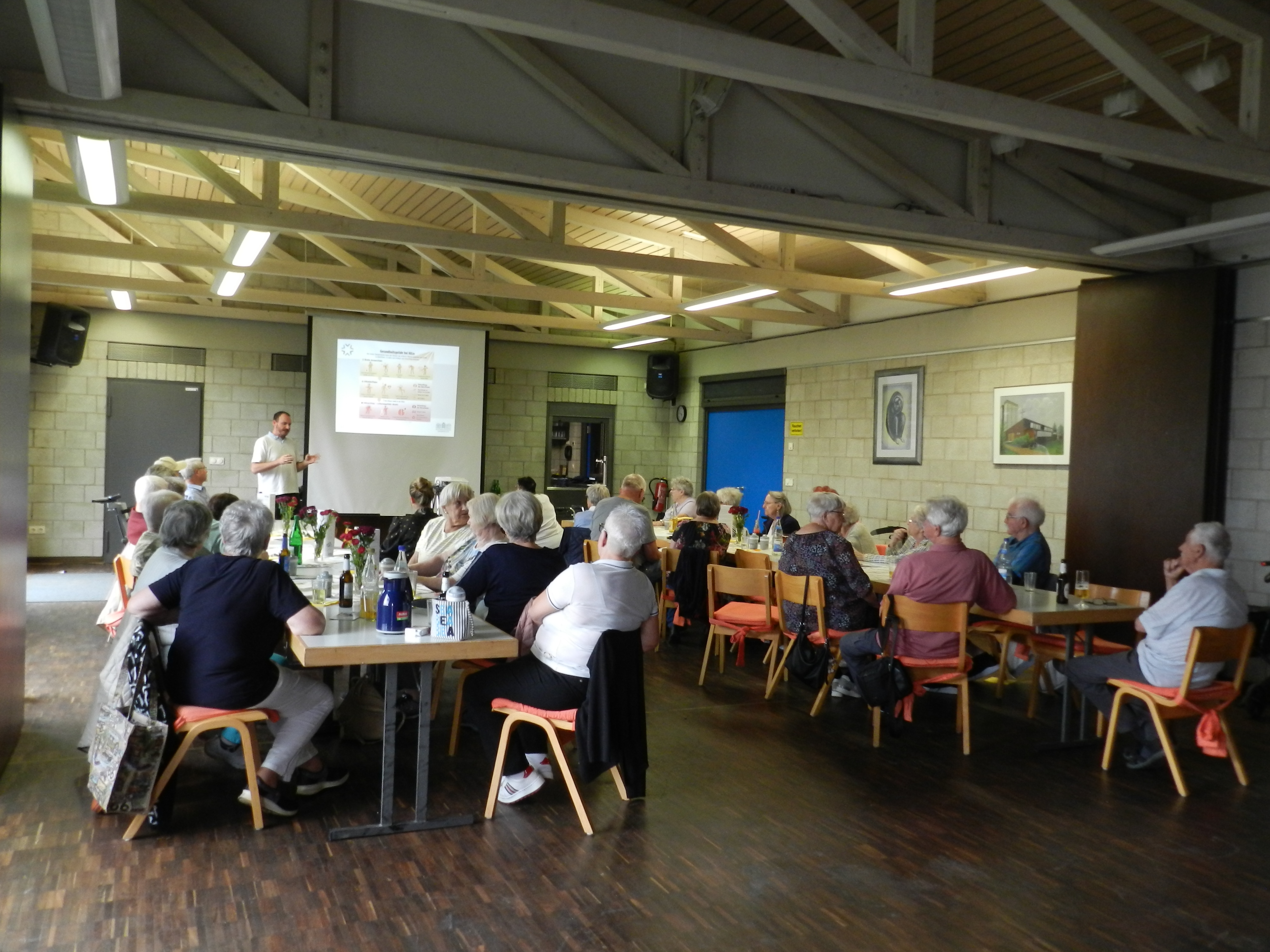 Als weiterer Schritt folgte die Einrichtung eines Hitzetelefons in einem der teilnehmenden Modellstandorte unseres Projektes, welches auch im Sommer 2023 wieder aktiv ist. Des Weiteren waren verschiedene Akteur*innen des Gesundheitsamtes auf diversen Messen, Stadtteilfesten und Aktionstagen mit einem eigenen Stand vor Ort. Dort wurde Trinkwasser, frisches Obst und Informationsmaterial ausgegeben. Wir haben unser sogenanntes Hitzeinfoblatt, auch als Tischaufsteller erhältlich, überarbeitet und können dieses ergänzend nun in leichter Sprache und mehreren Fremdsprachen anbieten. Als teilnehmender "Landkreis" der Schattenspenderkampagne des Umweltbundesamtes hat der Regionalverband Saarbrücken einen eigenen Hitzeknigge erstellt, der ebenfalls u. a. Handlungsempfehlungen zum Hitzeschutz und Ansprechpersonen im Regionalverband Saarbrücken benennt. In einer Vortragsreihe zu "Gesund bleiben bei Hitze" sind unsere Ärzt*innen des Gesundheitsamtes auch selbst vor Ort in den Gemeinweseneinrichtungen und stehen persönlich für Fragen zur Verfügung. Hier erhalten die Teilnehmenden eigens für das Projekt angefertigte Trinkbecher, um die Notwendigkeit von ausreichender Flüssigkeitszufuhr, insbesondere während extremer Hitzewellen, nochmal zu unterstreichen.Gemeinweseneinrichtungen und stehen persönlich für Fragen zur Verfügung. Hier erhalten die Teilnehmenden eigens für das Projekt angefertigte Trinkbecher, um die Notwendigkeit von ausreichender Flüssigkeitszufuhr, insbesondere während extremer Hitzewellen, nochmal zu unterstreichen.