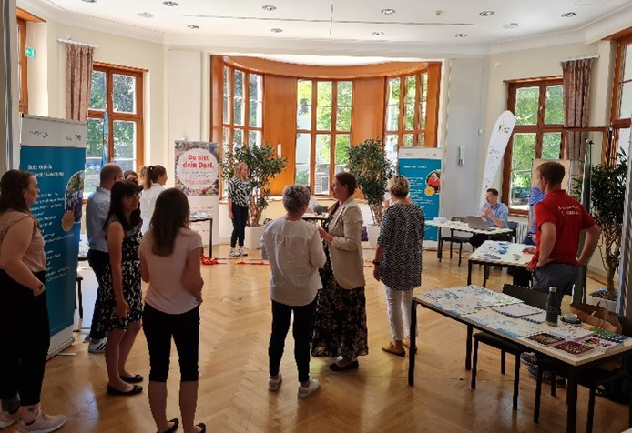 Auf dem darauffolgenden Projektmarktplatz stellten sich lokale Initiativen für mehr Bewegung vor und ermöglichen den kommunalen Teilnehmenden einen gemeinsamen Austausch. Die vielfältigen Beiträge aus ganz Sachsen-Anhalt nahmen dabei sowohl verschiedene Altersgruppen als auch Zielstellungen in den Blick. Gemeinsam mit der KGC Sachsen-Anhalt signalisierten sie interessierten Kommunen ihre Unterstützung bei der Verwirklichung von eigenen Projektvorhaben.