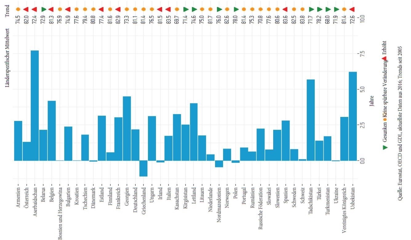 Der Sachstandsbericht zeigt, dass die gesundheitlichen Ungleichheiten in den letzten 10 Jahren nicht minimiert werden konnten. Sie haben in vielen Fällen sogar zugenommen: Benachteiligte Männer haben eine bis zu 15 Jahren niedrigere Lebenserwartung als die Durchschnittsbevölkerung in der europäischen Region, Frauen bis zu 7 Jahren.