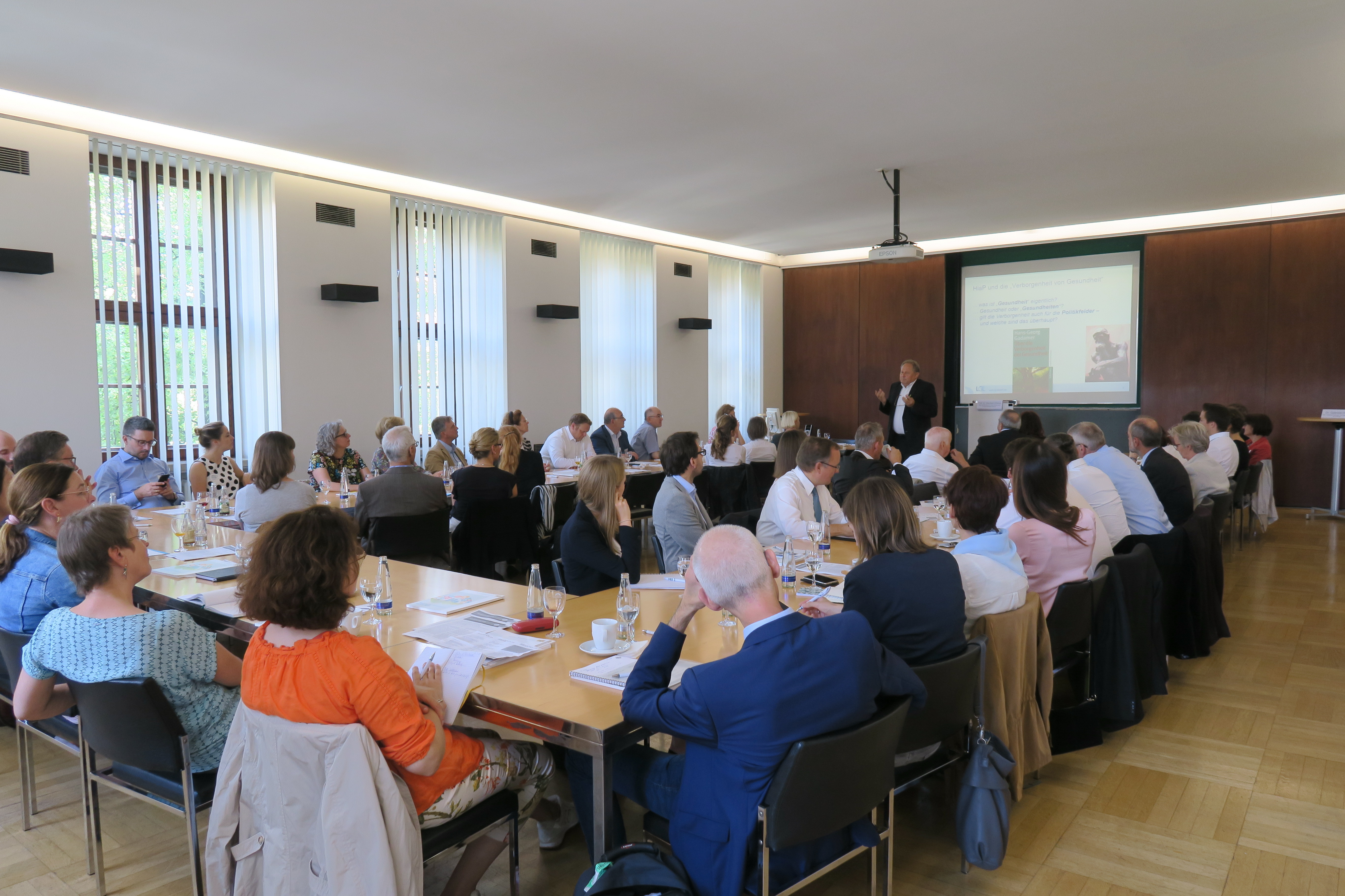 HiAP stellt den Anspruch, gesundheitsfördernde Lebensbedingungen und Lebenswelten zu schaffen: Dies setzt geeignete Entscheidungsstrukturen sowie politischen Gestaltungs- und Durchsetzungswillen voraus. Denn Gesundheit ist kein naturgegebener Zustand, sondern immer auch Ergebnis menschlicher Anstrengungen, betonte Prof. Dr. Manfred Wildner, Bayerisches Landesamt für Gesundheit und Lebensmittelsicherheit, in seinem Impulsvortrag zur Arbeitssitzung.