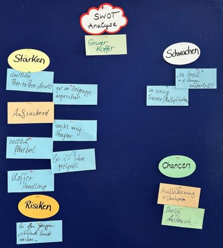 Im Anschluss daran wurden mittels einer SWOT-Analyse drei Projekte der Cannabisprävention auf den Prüfstand gestellt.