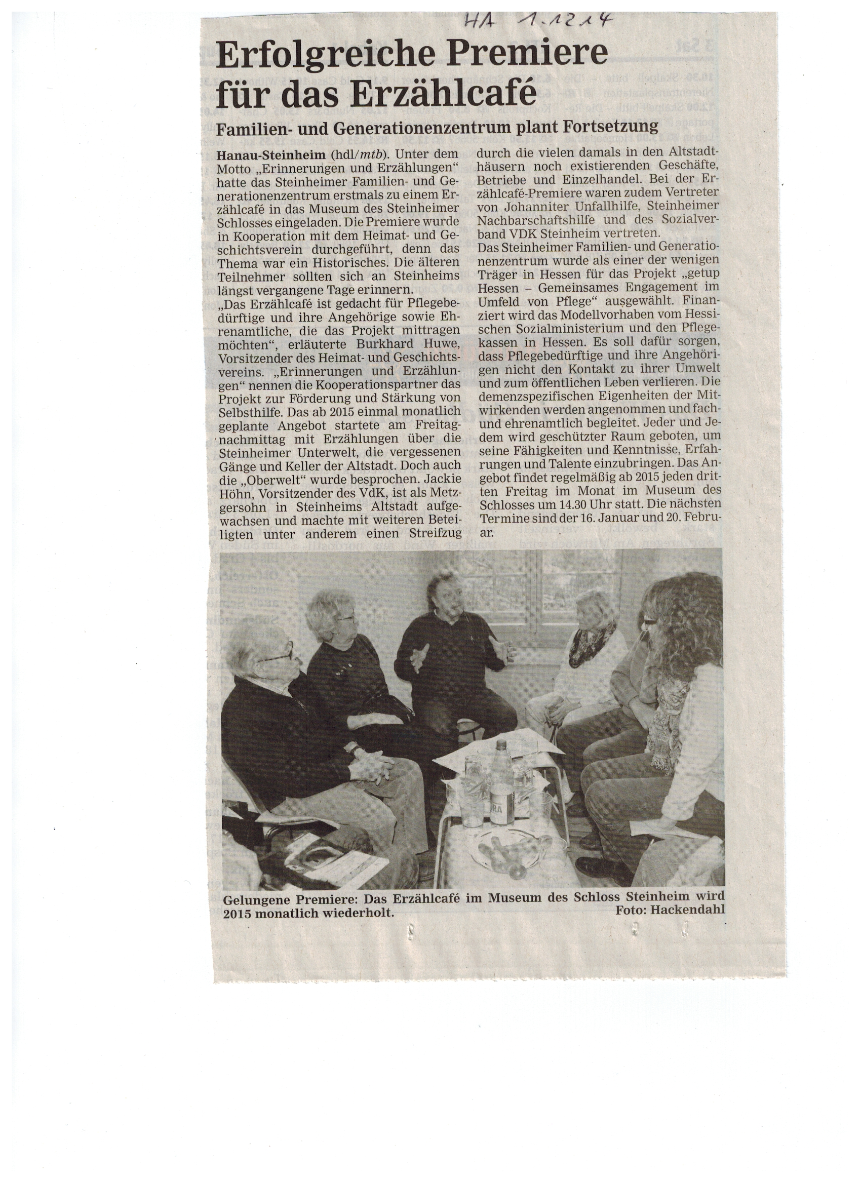 Das Steinheimer Familien- und Generationenzentrum ist sozialraumorientiert und bietet generationsübergreifend niederschwelligen Zugang zu Beratung, Betreuung, Bildung und Begleitung von der Schwangerenberatung über die Kindertagesstätte, die Kinder- und Jugendarbeit sowie die Erwachsenenbildung und die Seniorenarbeit bis zur Tagespflege und Sterbebegleitung.